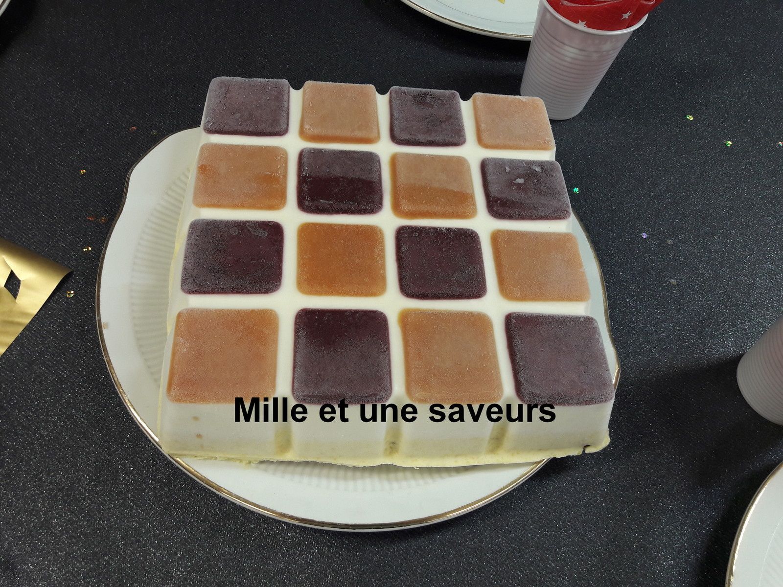 Pour les fêtes de fin d'année au centre d'animation, j'ai réalisé un bavarois mangue coco de Sonia Ouki. Je la remercie car franchement ce fut un vrai régal. Je l'ai fait grâce à mon moule Tablette qui mesure 20,5 cm de côté. Le top du top. Léger, pas trop sucré, que demander de plus après un bon repas copieux ?
