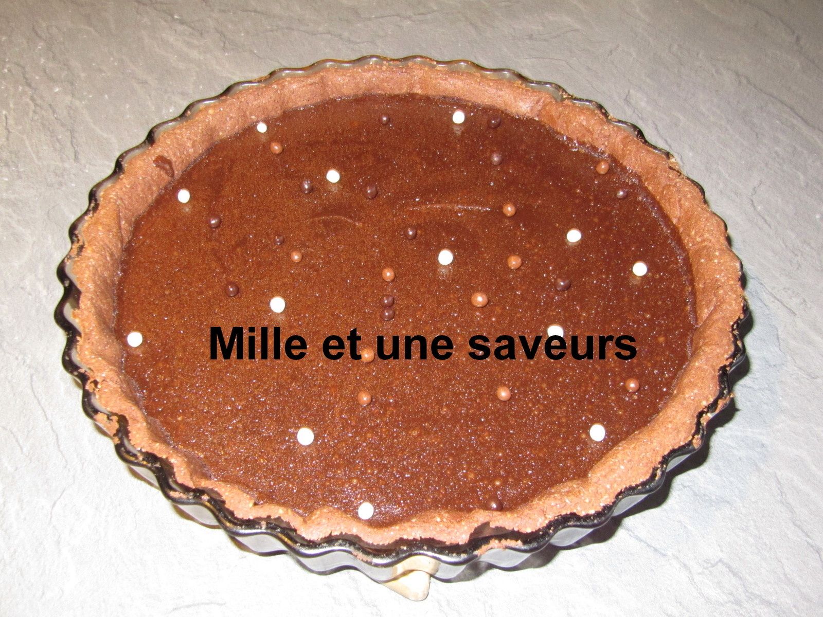 Je vous propose aujourd'hui une tarte au chocolat, en effet ma fille devait en faire une samedi mais pour diverses raisons, elle n'a pas pu la réaliser. J'ai donc voulu lui faire plaisir, car tout comme sa mère, elle adore le chocolat. Alors ma chérie,...